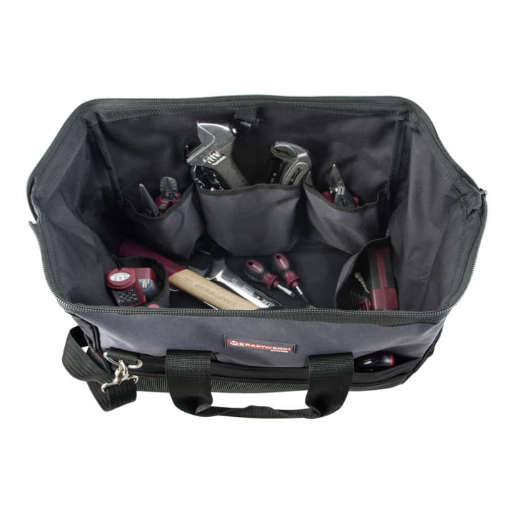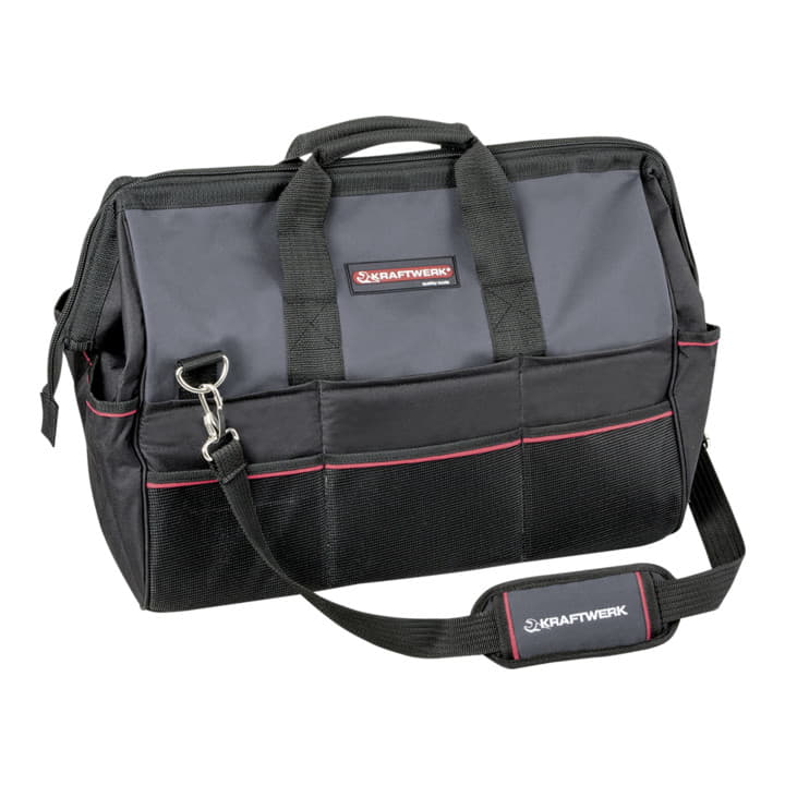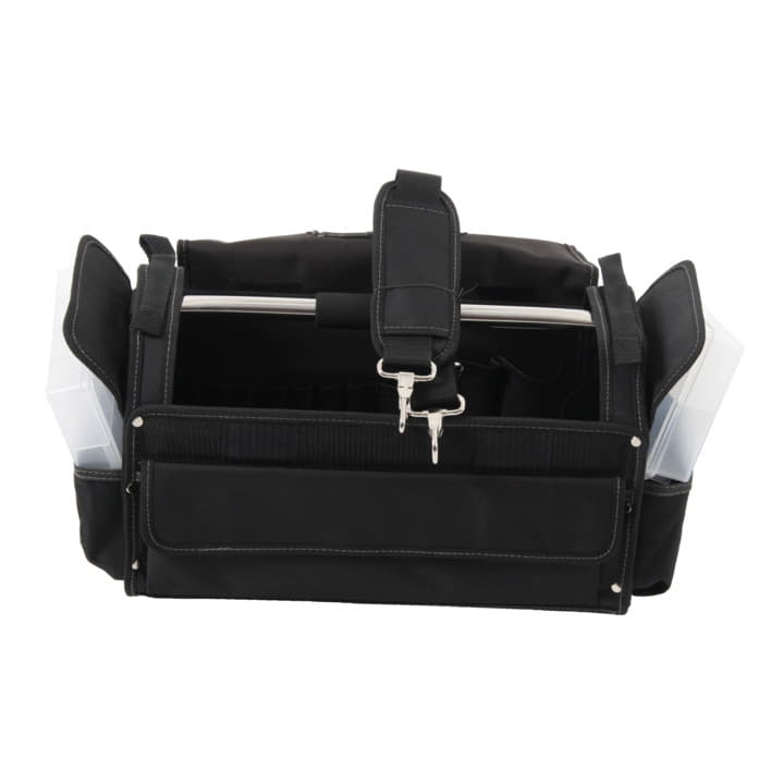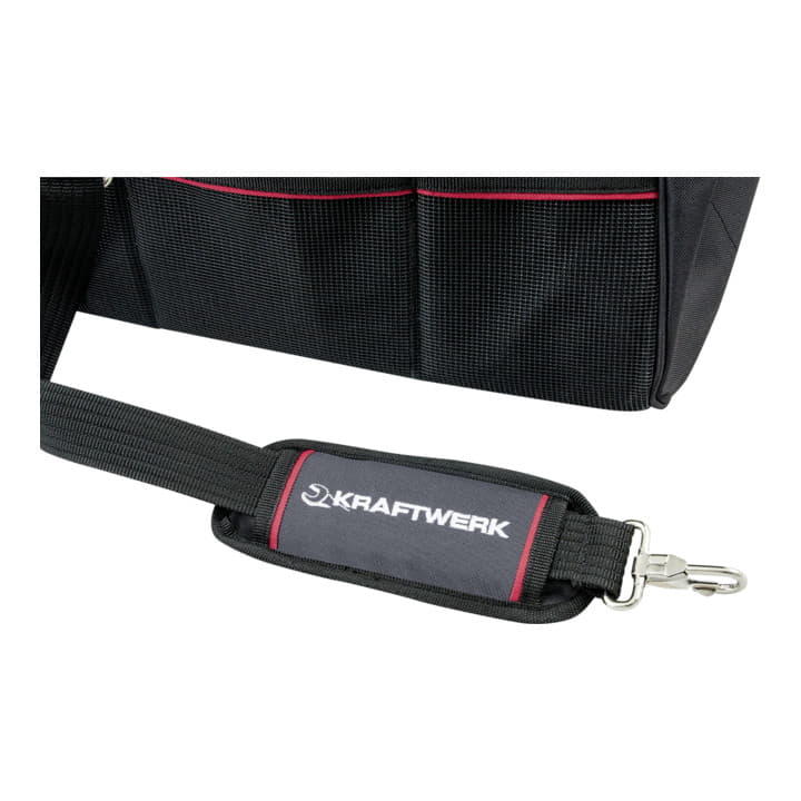 Flexible Schlaufen im Inneren zum Festhalten der Werkzeuge, Stabiler Verschluss mit leicht verstellbarem Gurt