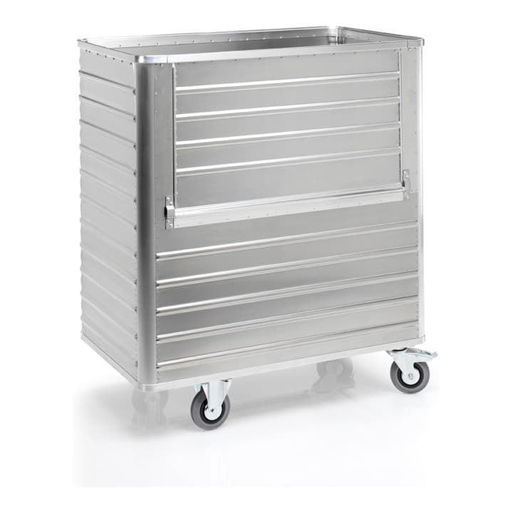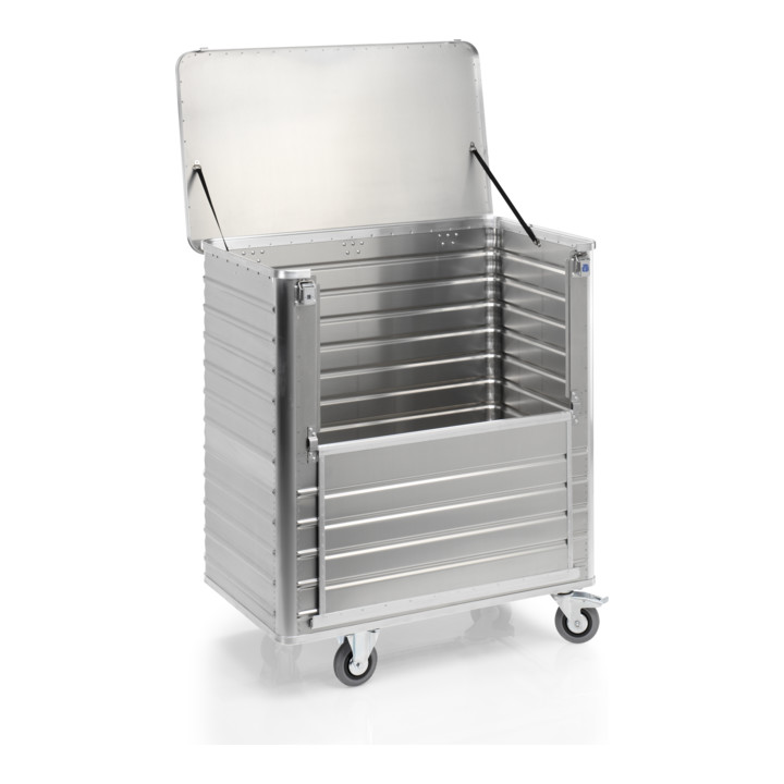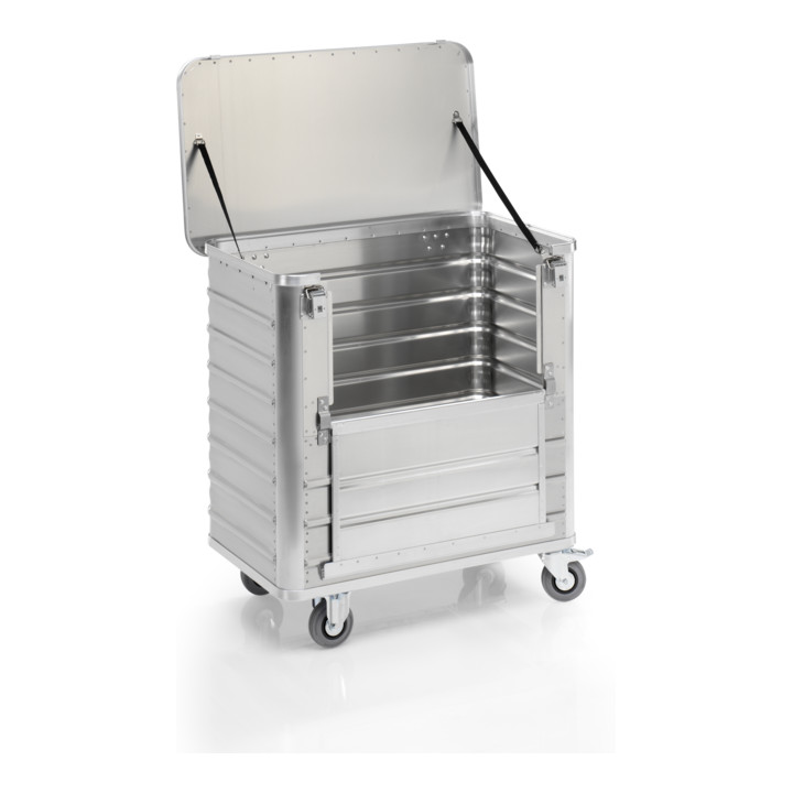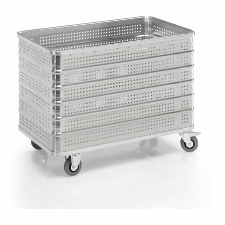 Die vielseitigen Transportwagen sind in verschiedenen Größen und Ausführungen erhältlich. Zu den Standardausführungen gehören Wagen mit glatten, gesickten, gelochten und eloxierten Wänden.
