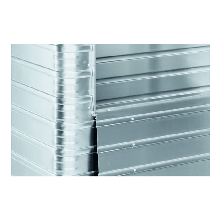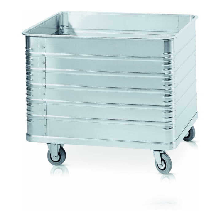 Vielfältig einsetzbarer Transportwagen mit Deckel zum Schutz der Güter, umlaufendem Rammschutz und eloxierter, abriebfester Oberfläche.