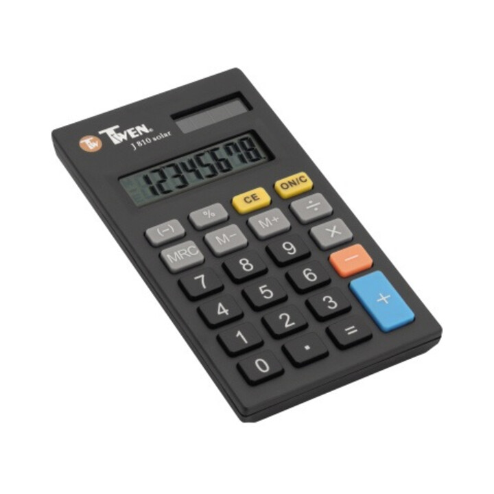 Mit 8-stelligem LC-Display und Softtouch-Tastatur. Mit Fuktionen wie Grundrechenarten, Prozentfunktion, Vorzeichenwechsel, automatischer Energieabschaltung und 3 Speichertasten. Gehäuse aus Recycling-Material.