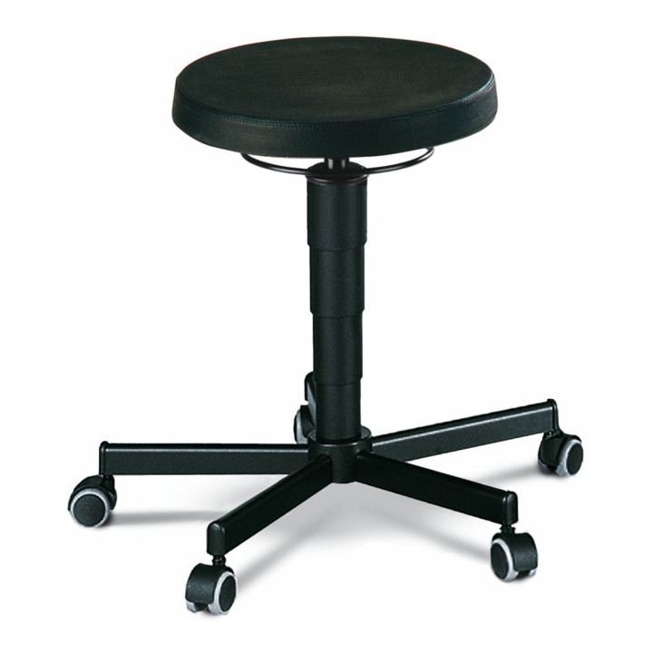 Die widerstandsfähigen Hocker bieten durch ihre extra-große Sitzfläche von 40 cm Durchmesser idealen Halt für den Einsatz in Industrie und Handwerk. Das stabile Stahlfußkreuz und der umlaufende Polster-Kantenschutz garantieren eine lange Lebensdauer. Die praktische Ringauslösung der Gasfeder ermöglicht eine komfortable Sitzhöhenverstellung.