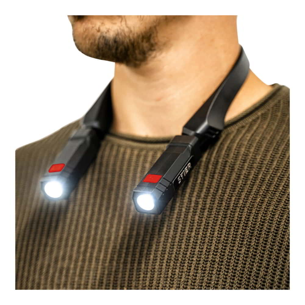 Stab-LED-Arbeitsleuchte PWLS 01-3 Extraheller Arbeitsstrahler mit 3 Befestigungsvorrichtungen, Taschenlampenfunktion und Warnblinklicht