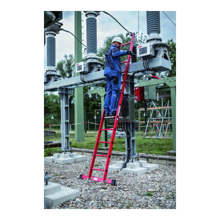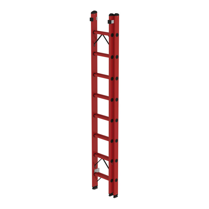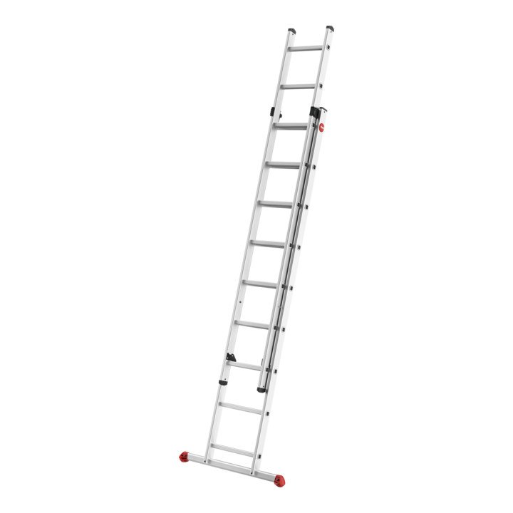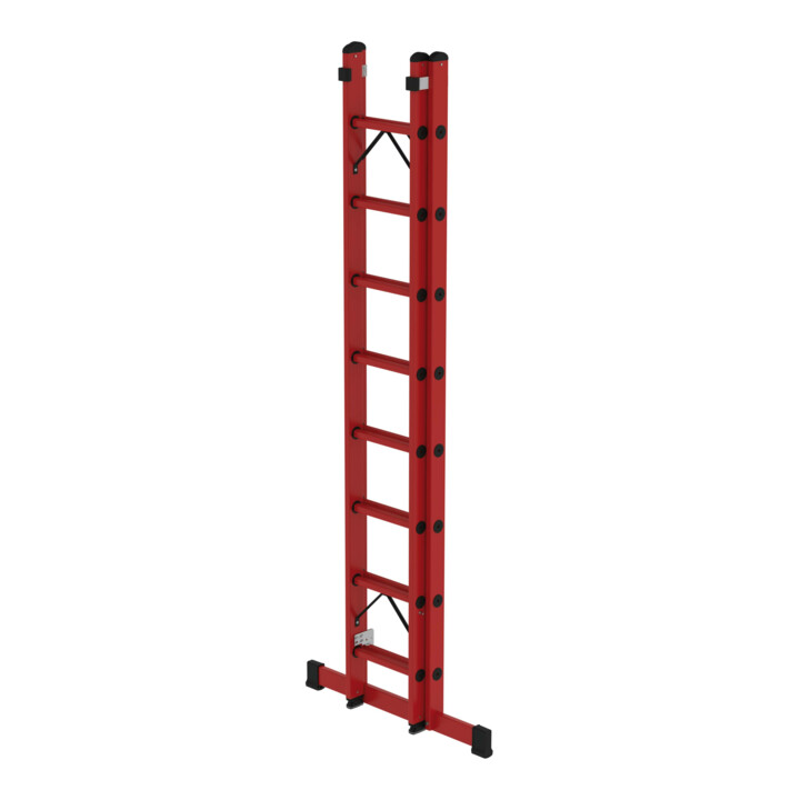 Die zweiteilige Aluminium-Schiebeleiter mit 2x9 Sprossen.