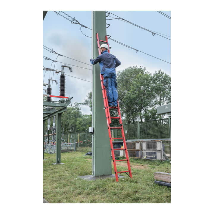 Die zweiteilige Aluminium-Schiebeleiter mit 2x18 Sprossen.