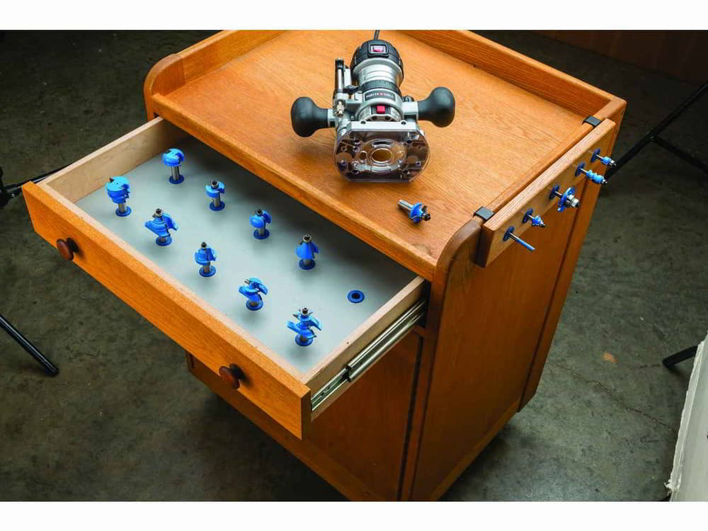 Führungsschienen-Adapter, Seitenanschlag mit Feineinstellung und Absaughaube, Führungsstangen, Kopierring Ø 17 mm, Kopierring Ø 24 mm, Kopierring Ø 27 mm, Kopierring Ø 40 mm, Laufsohle D 36, Laufsohle für Kopierringe, Auflageverbreiterung, Systainer SYS3 M 237, im Karton