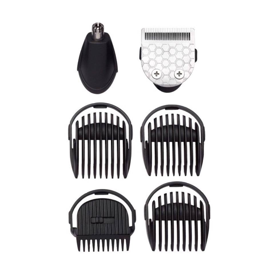 Die Firma BaByliss bietet hier einen 6 in 1 Gesichtshaartrimmer zum Formen und Stylen des Bartes und der Stoppeln. Durch den Nasenhaartrimmer Aufsatz lassen sich auch die Nasen- und Ohrenhaare trimmen. Die Klingen sind alle aus rostfreiem Edelstahl gefertigt um eine lange Lebensdauer und Präzision zu gewährleisten. Die Schneideaufsätze lassen sich problemlos entfernen und reinigen. Die Firma BaByliss ist ein Hersteller der sich auf die Herstellung von Geräten zur Haarpflege konzentriert und zeichnet sich vor allem durch seine hohe Verarbeitungsqualität aus.