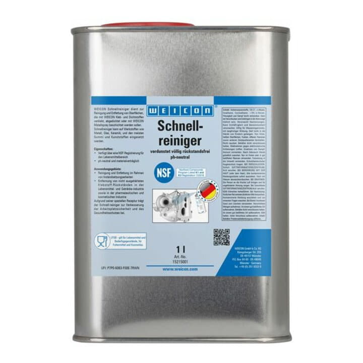 WEICON Reiniger S entfernt ölige und fettige Verschmutzungen von allen Metallen sowie von Keramik, Glas und den meisten Kunststoffen. Er kann jedoch die Oberfläche von Thermoplasten wie PVC, Plexiglas, Polystyrol und einfachen Lackschichten angreifen. WEICON Reiniger S verdunstet schnell und im Gegensatz zu herkömmlichen Verdünnern rückstandsfrei. Er kann zur Reinigung und Entfettung vor dem Grundieren und Lackieren, zur Reinigung von Maschinenteilen oder vor dem Auftragen anderer WEICON Produkte auf Oberflächen eingesetzt werden, wo ein fettiger Untergrund deren Wirkung beeinträchtigen würde. Auch für die Entfettung von Elektromotoren und stark beanspruchten elektronischen Geräten ist Reiniger S eine hervorragende Lösung.