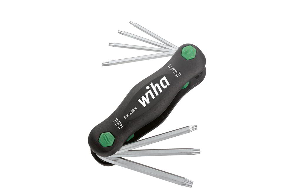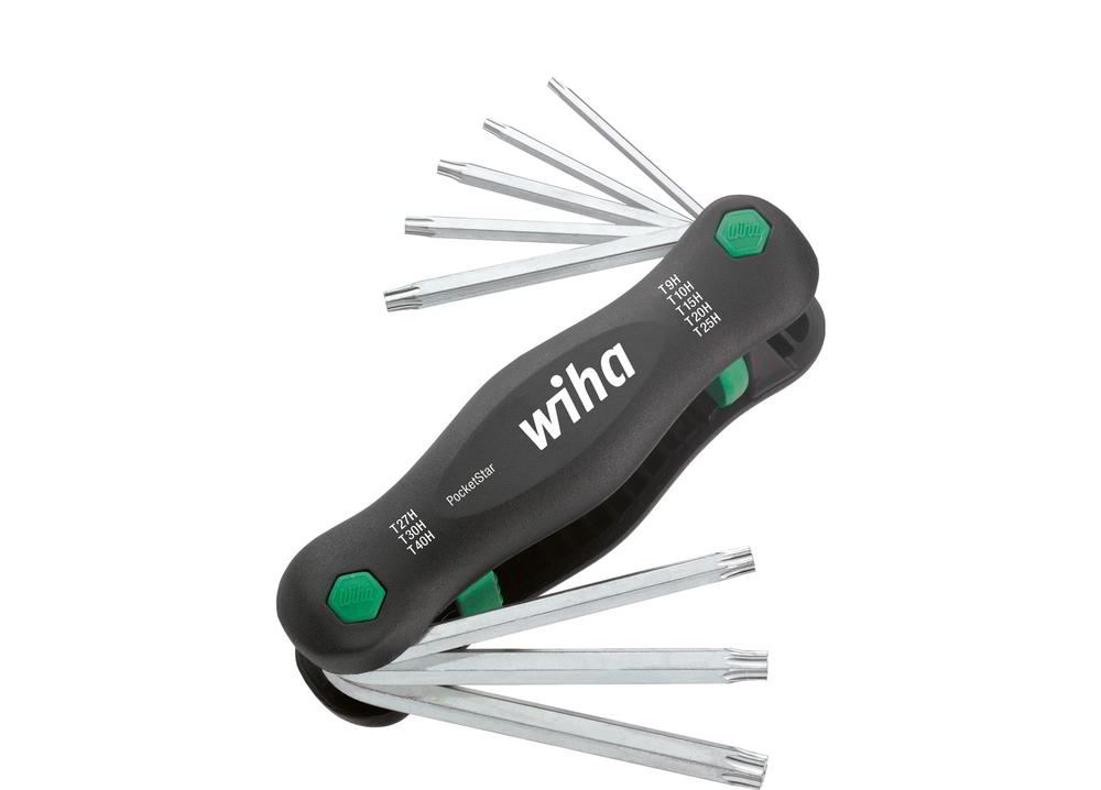 Schluss mit eingequetschten Fingern beim Verschrauben und der langen Suche nach der richtigen Schlüsselgröße! Das Multitool PocketStar® überzeugt gleich in vielerlei Hinsicht. Die neun Stiftschlüssel werden platzsparend in einem handlichen Klapphalter aufbewahrt. Somit ist das Stiftschlüsselset perfekt für den mobilen Einsatz geeignet und passt auch in die Hosentasche. Über die Aushebetaste erfolgt die einfache und leichte Auswahl der gewünschten Schlüsselgröße. Dank der variabel einstellbaren Arbeitsstellungen ist der PocketStar® ideal für den universellen Einsatz geeignet: In der 180°-Stellung wird das Werkzeug zum Schraubendreher mit Längsgriff. Bei einer Positionierung des Schlüssels am 270°-Anschlag wird aus dem Klapphalter ein Werkzeug mit praktischem Hebelarm für hohe Drehmomente. Dadurch wird in dieser Position ein Umknicken und damit Einquetschen der Finger vermieden.