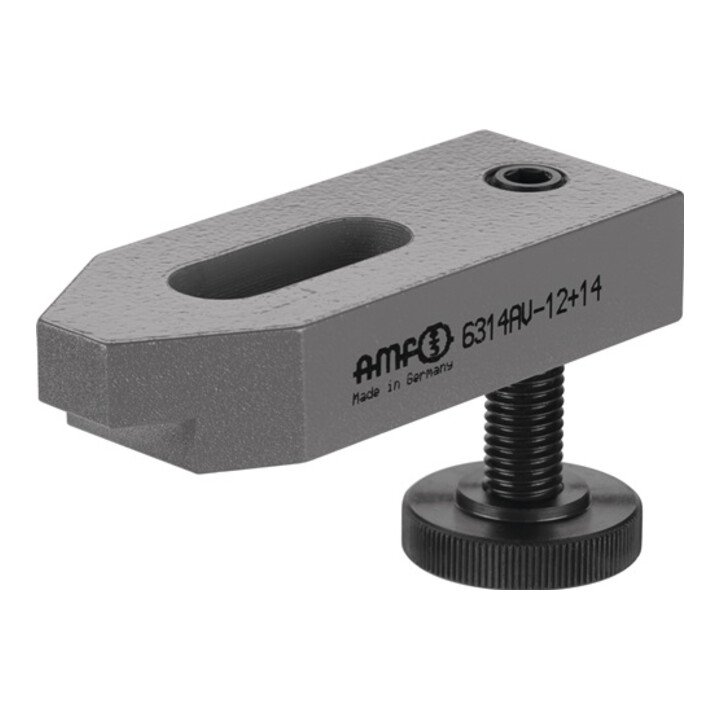 Zum Spannen können wahlweise Spannschrauben DIN 787, Stiftschrauben DIN 6379 und Zylinderschrauben ISO 4762 verwendet werden. Zwischen Sechskantmutter und Druckstück ist unbedingt eine Unterlegscheibe DIN 6340 zu verwenden!