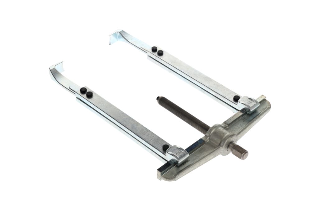 UNIVERSELL ANWENDBAR: Die verlängerten, austauschbaren Haken des Abziehers können dank der Einstellskala stufenlos justiert werden. Neben Kugellagern und Scheiben können Sie auch Räder demontieren.