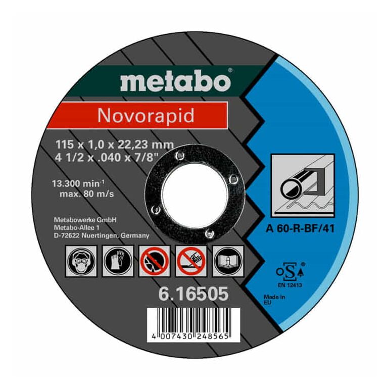 - Dünne Trennscheibe für die allgemeine Metallbearbeitung; besonders für dünnwandige Materialien, wie z.B. Rohre, Bleche, Profile, Drähte usw.