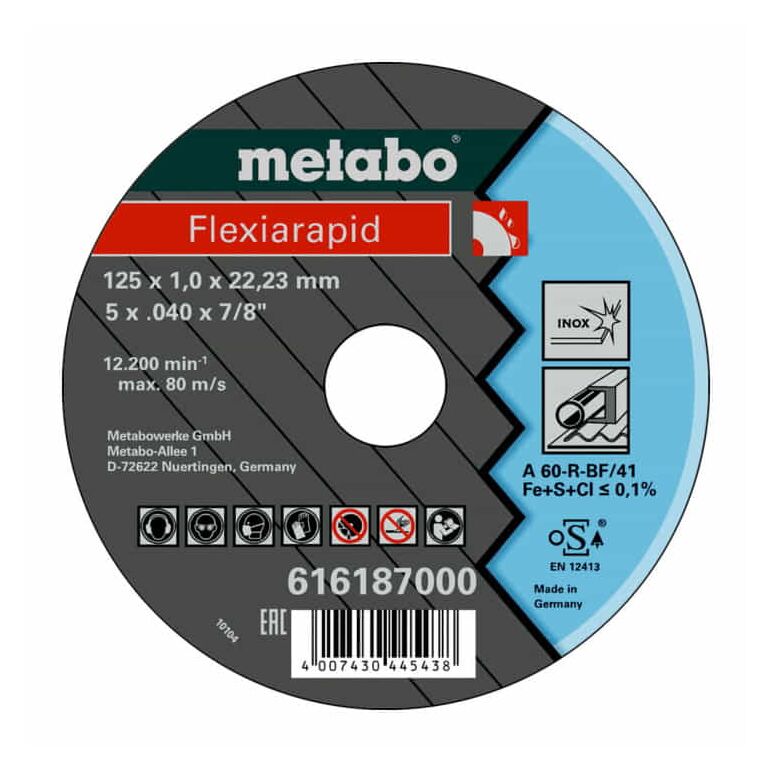 - Dünne Hochleistungsscheibe speziell für rostfreie, dünnwandige Materialien wie z. B. Rohre, Bleche, Profile, Drähte