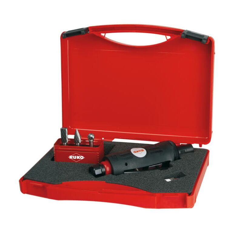 - Druckluftschleifer-Satz mit Kupplungsstecker inklusive Frässtifte-Satz im Kunststoffkoffer