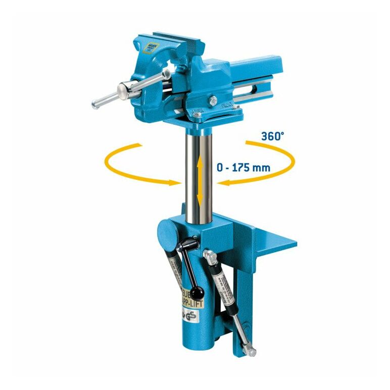 Heuer Klapp-Lift 140 cm (für Schraubstock 140 cm, höhenverstellbar 175 mm, drehbar 360°, tiefster Punkt 630 mm, Einklapptiefe 495 mm) 106140