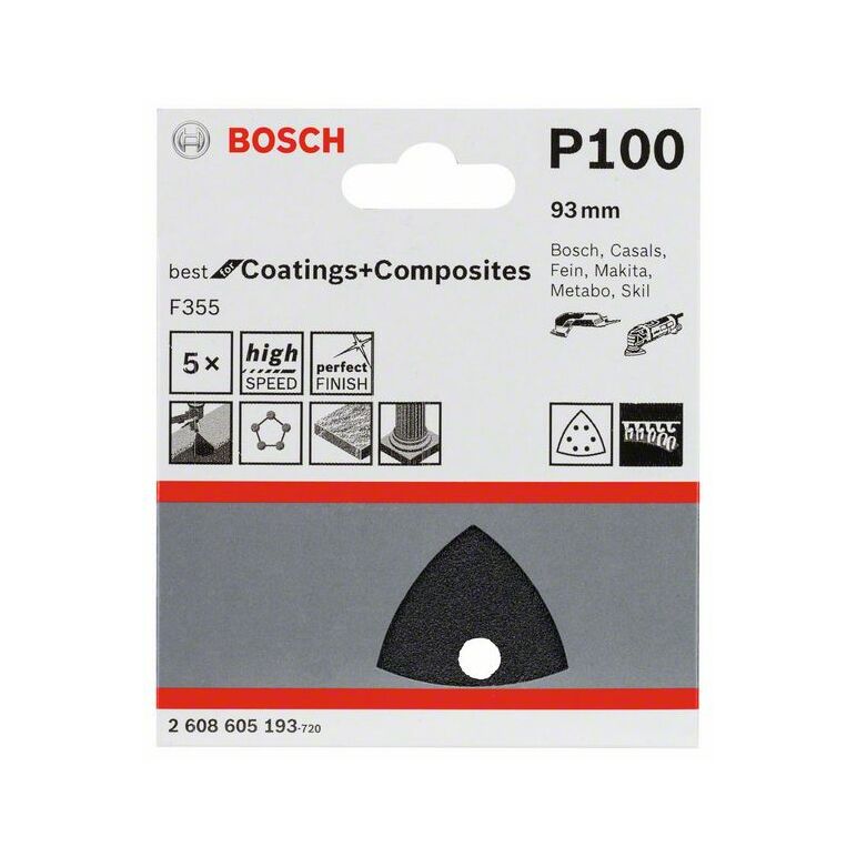Bosch Schleifblatt F355, 93 mm, 100, 6 Löcher, Klett, 5er-Pack (2 608 605 193)