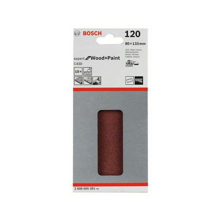 Bosch - Schleifpapier C430 80x133 mm, Körnung: K120 Körnung, Packungsinhalt: 10 Stück