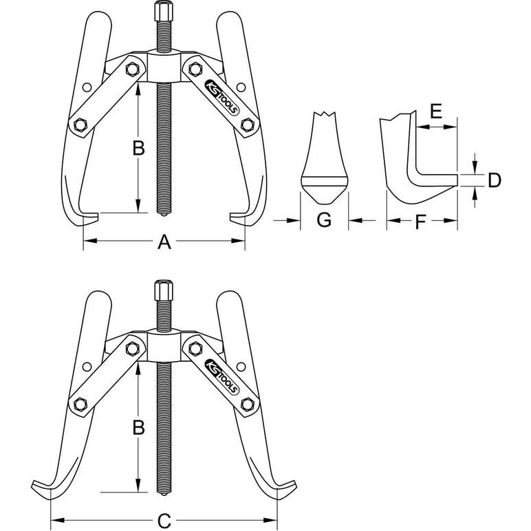 KS Tools 6203601 Abzieher Spannbereich (Details) 18 - 100 mm Anzahl Haken 2