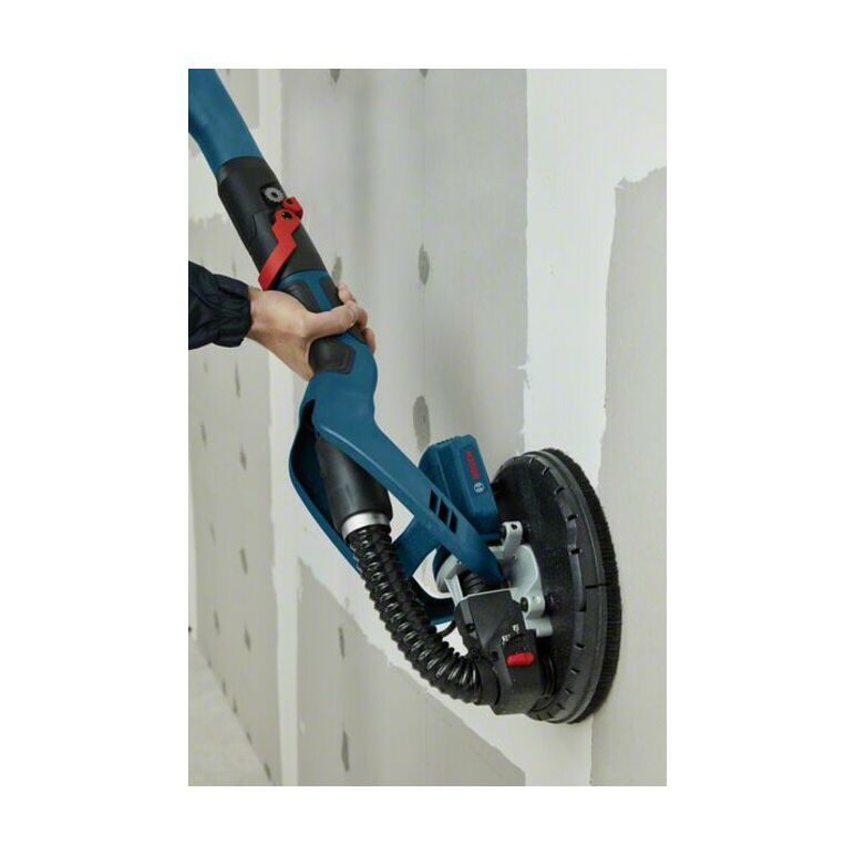 Dieser Trockenbauschleifer verfügt über einen patentierten ultraflexiblen Schleifkopf, der müheloses Bewegen über Wände und Decken ermöglicht und das Risiko von Oberflächenschäden reduziert