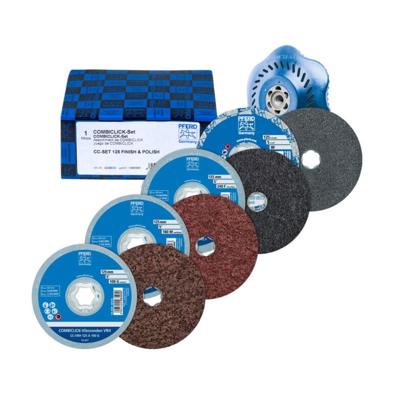 PFERD COMBICLICK-Set für Feinschliff und Oberflächenfinish