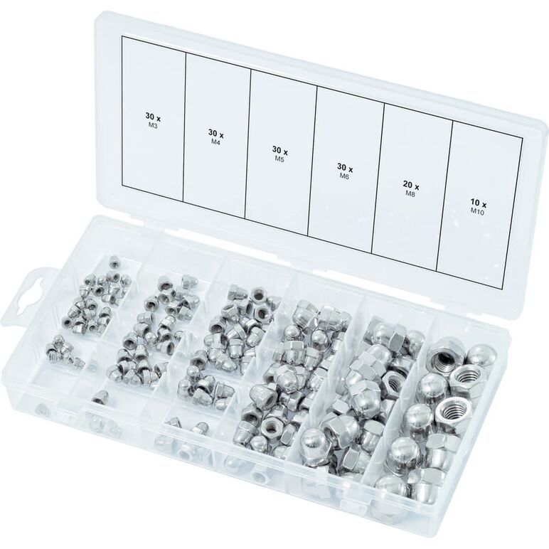 Sortiment Edelstahl-Muttern, metrisch, 150-tlg