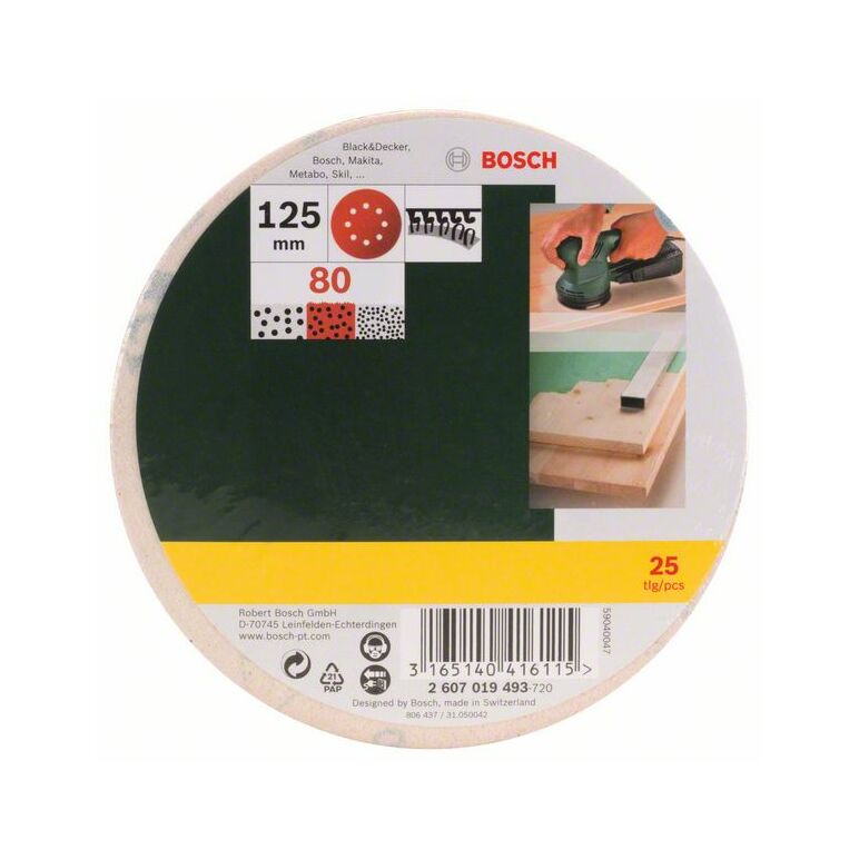 Bosch Schleifblatt-Set für Exzenterschleifer, 25-teilig, 8 Löcher, 125 mm, 80 (2 607 019 493)