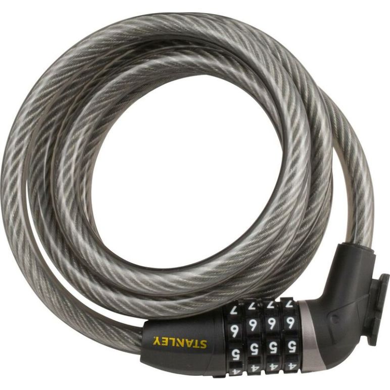 Überblick Hochwertiger metallischer Verschlussmechanismus mit verstärktem ABS-Gehäuse 12 mm starkes, flexibles und mit Vinyl ummanteltes Kabel 4 Zahlenräder für bis zu 9999 mögliche Zahlenkombinationen 180 cm Kabellänge, inklusive Halterung Beschreibung Das Stanley® Key Cable Fahrradschloss bietet hervorragenden Schutz für einen schnellen Stopp oder für eine Sicherung für ein paar Stunden. Dieses Schloss ist ideal, um Fahrräder in belebten Gegenen zu sichern Eigenschaften Hochwertiger metallischer Verschlussmechanismus mit verstärktem ABS-Gehäuse für zusätzliche Widerstandsfähigkeit und Haltbarkeit Lieferumfang Fahrradschloss Halterung