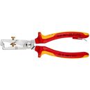 Abisolierzange mit Kabelschere – zwei unentbehrliche Werkzeuge der Elektroinstallation in einer Zange. Integrierte Kabelschere zum sauberen, quetschfreien Schneiden von Cu- und Al-Kabeln. Schneiden zusätzlich induktiv gehärtet, Schneidenhärte ca. 57 HRC. Universelle Einstellung der Abisoliermesser durch eine Rändelschraube. Schlanke Bauform für gute Zugänglichkeit. Abisolieren von ein-, mehr- und feindrähtigen Leitern mit Kunststoff oder Gummiisolation bis max. Ø 5 mm bzw. 10 mm² Leiterquerschnitt. Optische Orientierungshilfe zum Abisolieren gängiger Längen (11 mm und 16 mm) durch Abstufung in der Backe. Zange mit integrierter isolierter Befestigungsöse zum Anbringen einer Absturzsicherung.