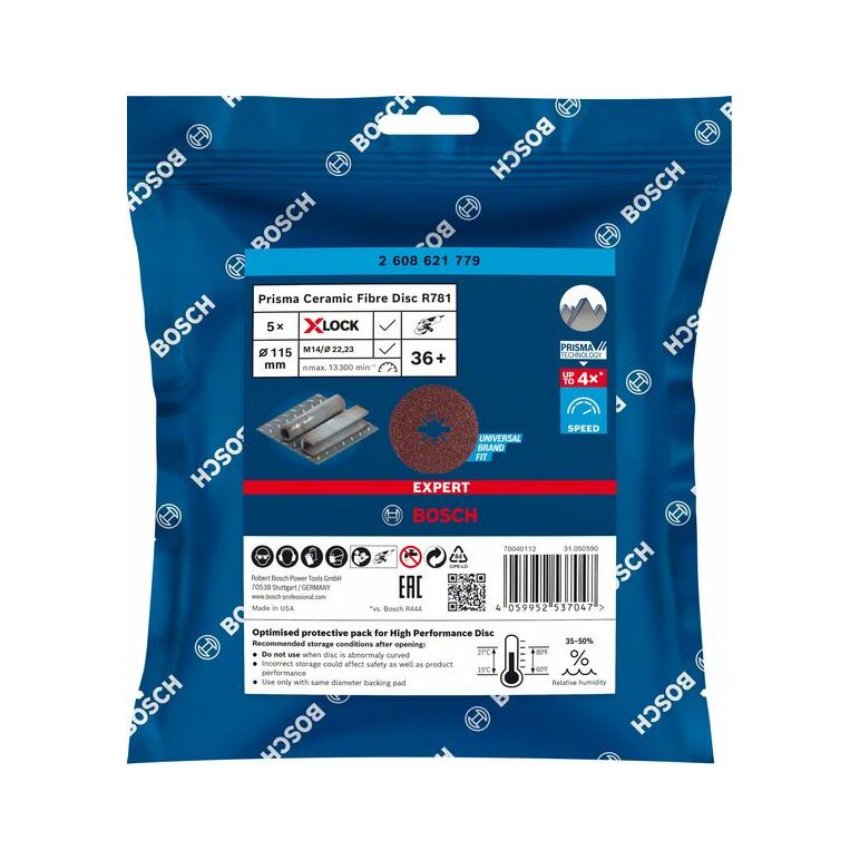Bosch EXPERT X-LOCK Fiberscheibe R781, Ø115mm, G36, 5x (2 608 621 779)