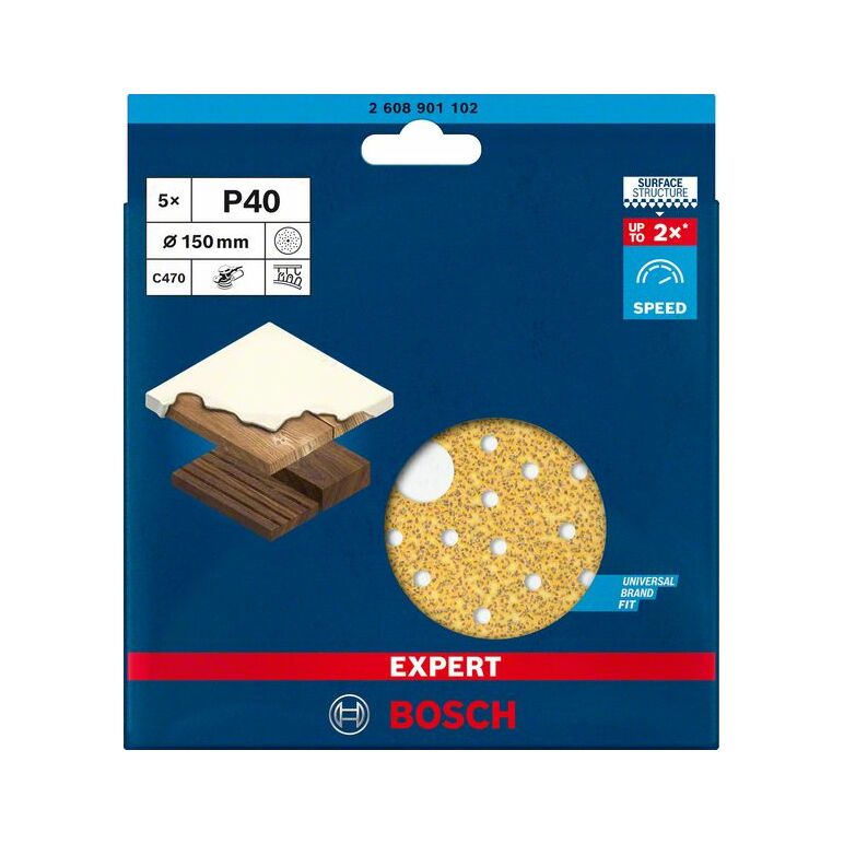 Bosch Accessories EXPERT C470 2608901102 Exzenterschleifpapier gelocht Körnung (num) 40 (Ø) 150 mm 5 St.