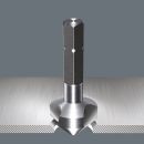 Hochwertiger 3-nutiger Kegelsenker-Bit zum Entgraten, Fasen und Senken. Die feinabgestimmte Materialelastizität garantiert hohe Standzeiten. Einwandfreie Spanabfuhr und geringe Verkantungsgefahr gewährleisten angenehmes Arbeiten. Schneidenteil nach DIN 335-C, 90° mit 3 Schneiden. 1/4"-Sechskant passend für Halter mit Aufnahme nach DIN ISO 1173-D 6,3.