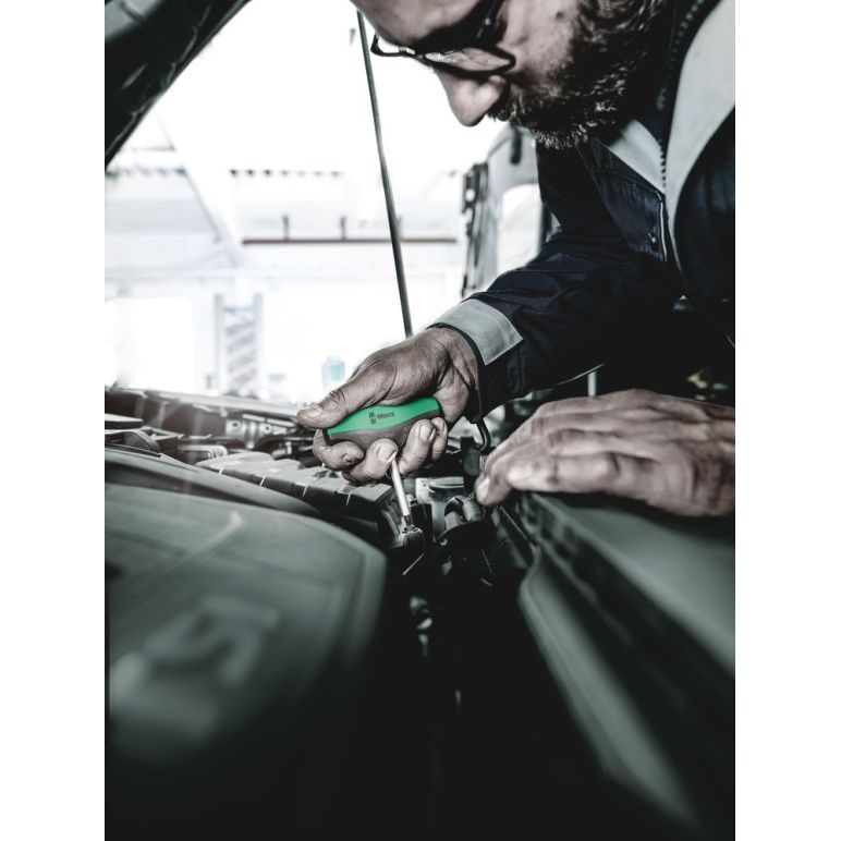 Wera Drehmomentindikator mit festem Drehmoment für TORX® Schrauben. Manipulationsgeschützt. Die robuste Rutschkupplung garantiert ein deutlich hör- und fühlbares Auslösesignal bei Erreichen des eingestellten Drehmomentes und ein Überziehen des Drehmomentes ist unmöglich. Mehrfach höheres Lösemoment als das eingestellte Anzugsmoment, dadurch wird größtenteils kein weiteres Werkzeug zum Lösen von Schraubverbindungen benötigt. Die Form des Griffs füllt die ganze Hand gut aus und die Finger liegen in den weich gerundeten Griffmulden. Dadurch ist eine optimale, ergonomische Kraftübertragung gewährleistet.