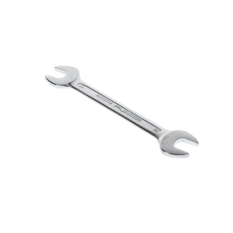 HOCHWERTIGE VERARBEITUNG: Der matt-satiniert verchromte Doppelmaulschlüssel ist blendfrei und liegt gut in der Hand. Auch bei öligen Händen bietet er einen sicheren Griff.