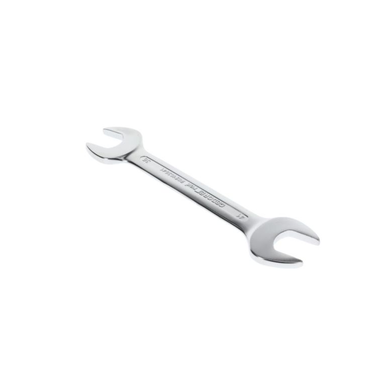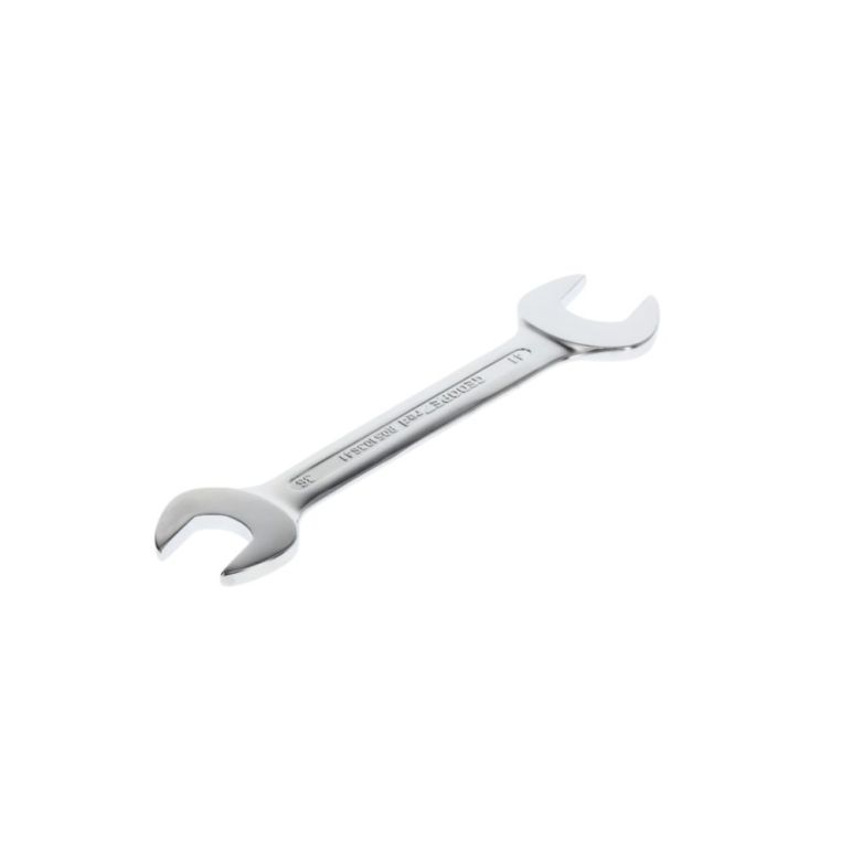 HOCHWERTIGE VERARBEITUNG: Der matt-satiniert verchromte Doppelmaulschlüssel ist blendfrei und liegt gut in der Hand. Auch bei öligen Händen bietet er einen sicheren Griff.