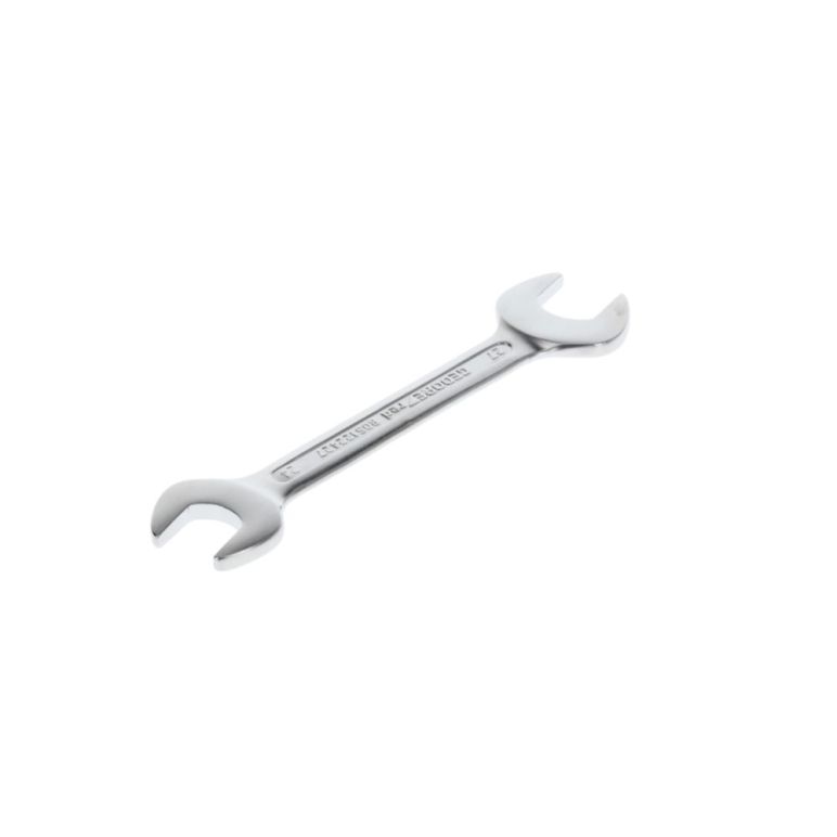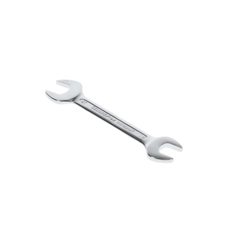 HOCHWERTIGE VERARBEITUNG: Der matt-satiniert verchromte Doppelmaulschlüssel ist blendfrei und liegt gut in der Hand. Auch bei öligen Händen bietet er einen sicheren Griff.