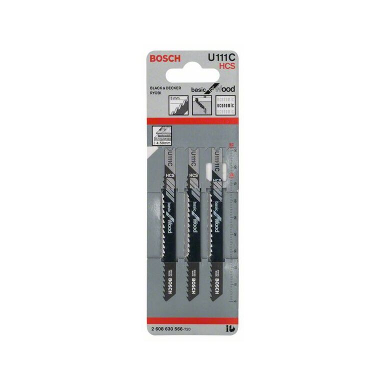 Bosch Stichsägeblatt U 111 C Basic for Wood, 3er-Pack (2 608 630 566)