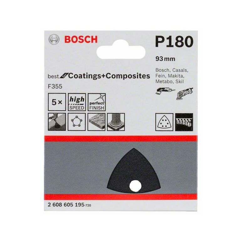 Bosch Schleifblatt F355, 93 mm, 180, 6 Löcher, Klett, 5er-Pack (2 608 605 195)