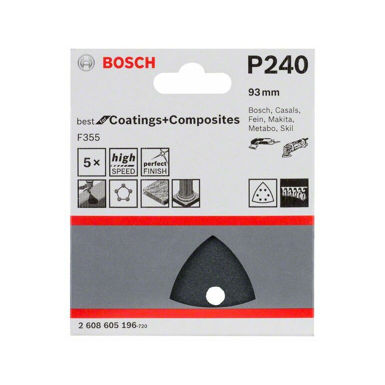 Bosch Schleifblatt F355, 93 mm, 240, 6 Löcher, Klett, 5er-Pack (2 608 605 196)