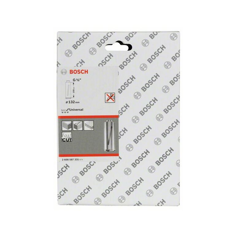 Bosch Diamanttrockenbohrkrone G 1/2 Zoll, Best for Universal, 132 mm, 150 mm, 6, 7 mm (2 608 587 331)