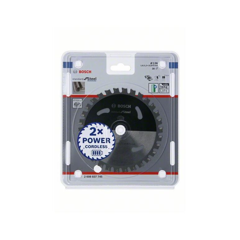Bosch Akku-Kreissägeblatt Standard for Steel, 136 x 1,6/1,2 x 15,875, 30 Zähne (2 608 837 745)