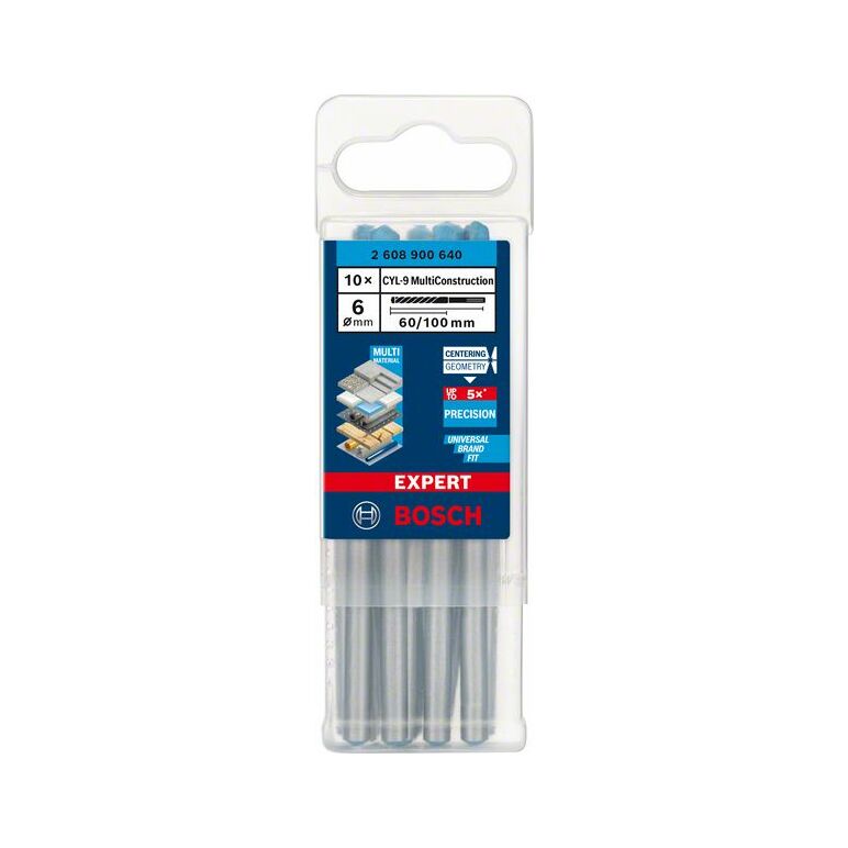 Bosch Accessories EXPERT CYL-9 MultiConstruction 2608900640 Mehrzweckbohrer 10teilig 6mm Gesamtläng