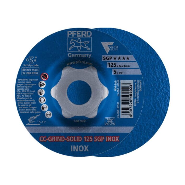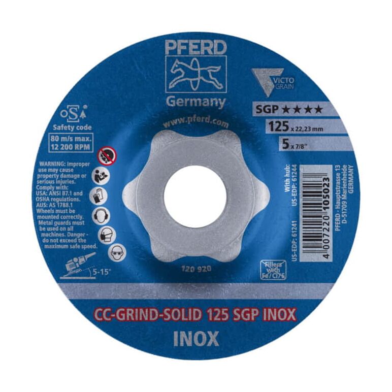 PFERD 64189125 CC-GRIND-SOLID 125 SGP INOX Schleifscheibe Durchmesser 125mm Bohrungs-Ø 22.23mm 10St.