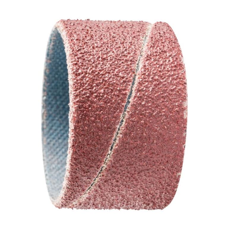 Korund, zylindrische Form · Schleifbänder werden in der Serienfertigung, bei der Nachbearbeitung und in der Montage verwendet · zerreißfestes, vollkunstharzgebundenes Material bildet die Basis · durch die gute Kornhaftung wird eine hohe Standzeit erreicht · die Zugabe von Fett oder Schleiföl ist empfehlenswert, besonders bei Leichtmetallbearbeitung