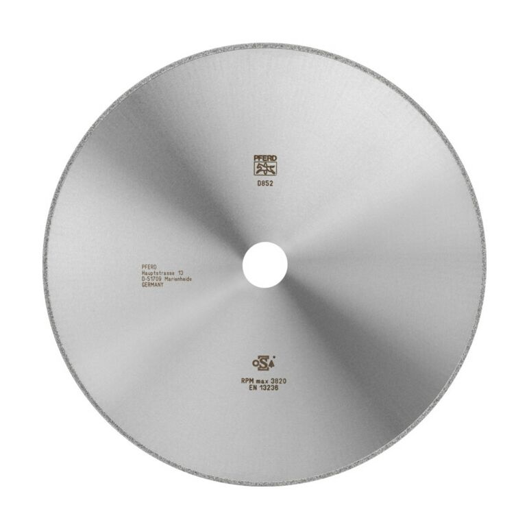 • Galvanisch gebundene Diamant-Trennscheiben in der Körnung D 852 eignen sich hervorragend für die Bearbeitung von Grau- und Sphäroguss (GG und GGG bzw. GJL und GJS) sowie für den Einsatz auf Robotern