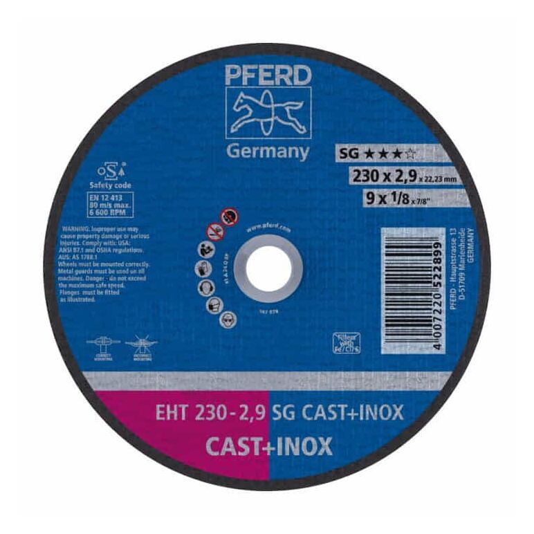 - Für den rauen Einsatz in Gießereien und Putzereien optimierte Trennscheibe mit hoher Trennleistung, guter Standzeit und hoher Seitenstabilität