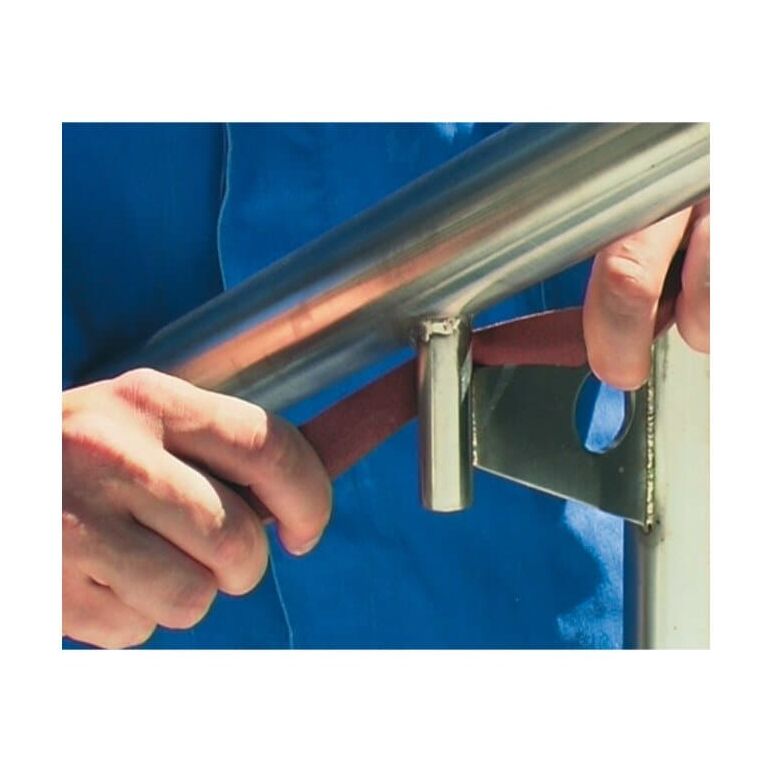 - Der Karton verfügt über eine Abreißkante zum Abtrennen der Schleifbandstücke am Arbeitsplatz