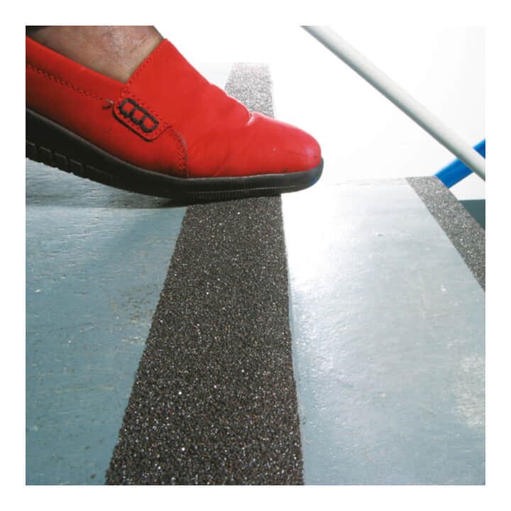 Blanke, polierte oder glänzende Böden bilden bei Nässe oder glattem Schuhwerk eine ständige Gefahr. Antirutschbelag selbstklebend hilft dabei, schwerwiegende Rutschunfälle zu verhindern. Nachrüstbare Antirutschbeläge mit grobkörniger Oberfläche schaffen Trittsicherheit. Für Treppen, Ein- und Ausgänge, Rampen, Podeste, Leitern, Fahrzeuge, Stahlflächen ...