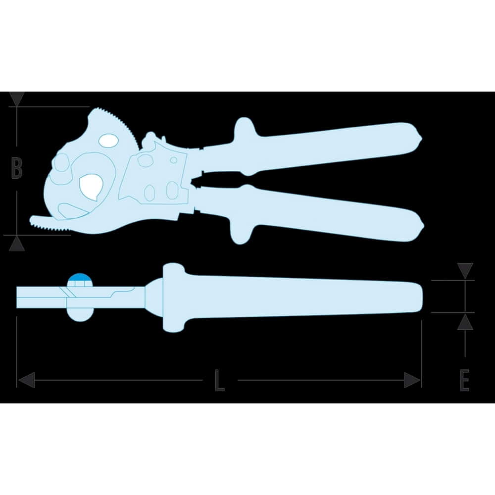 Schneidet Kupfer- und Alu-Kabel bis 27 mm Ø, massiv 200 mm²