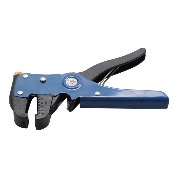 Ausführung: Aus schlagfestem, glasfaserverstärktem Kunststoff, die auswechselbaren Messer passen sich automatisch dem Kabel-Ø an. Mit Längenanschlag 5-15 mm und Seitenschneider bis 2,5 mm².