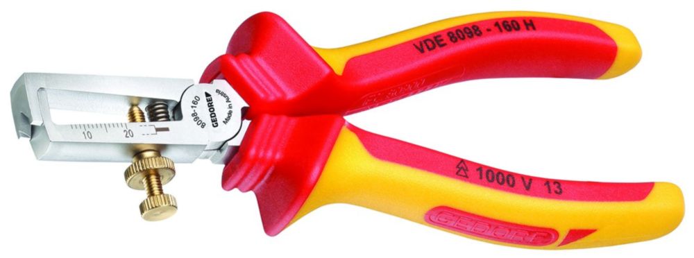 LIEFERUMFANG: 1 x GEDORE VDE-Abisolierzange mit Hüllenisolierung, Länge: 160 mm, Gewicht: 204 g, Artikelnummer: VDE 8098-160 H