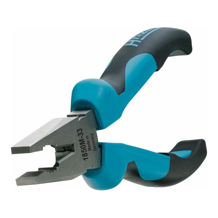 KOMBINATIONSZANGE: Die Zange mit Hieb vereint verschiedene Funktionen. Speziell versetzte Zähne in den Greifflächen ermöglichen einfaches Greifen und Halten. Auch Drähte können geschnitten werden.